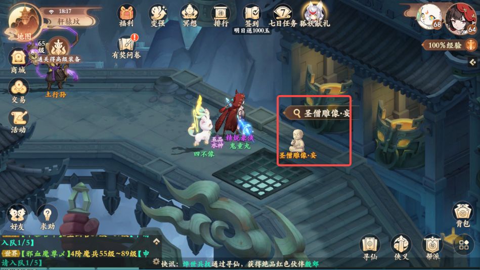 2、打开小地图前往如图所示处,点击圣僧雕像·妄对话