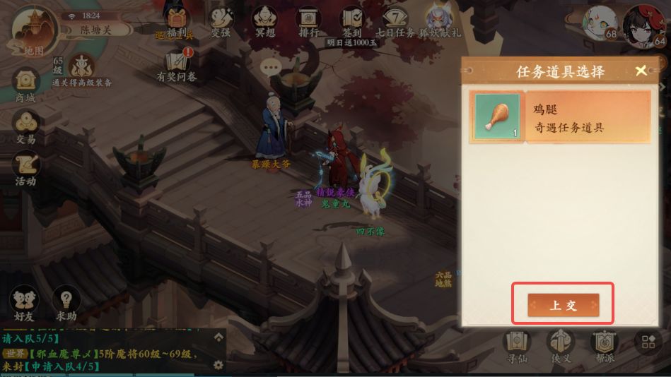 7、购买后回到陈塘关暴躁大爷处,再次与其对话,上交鸡腿后获取忿珠