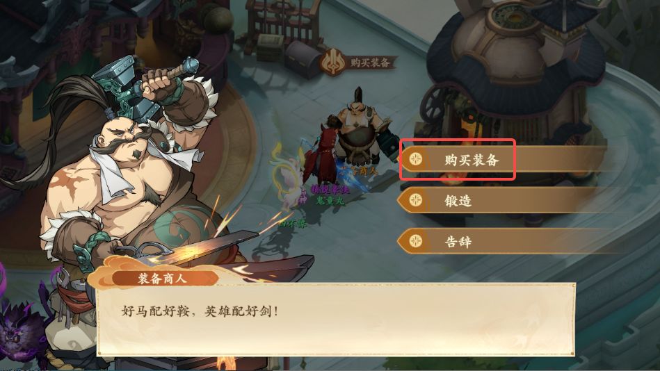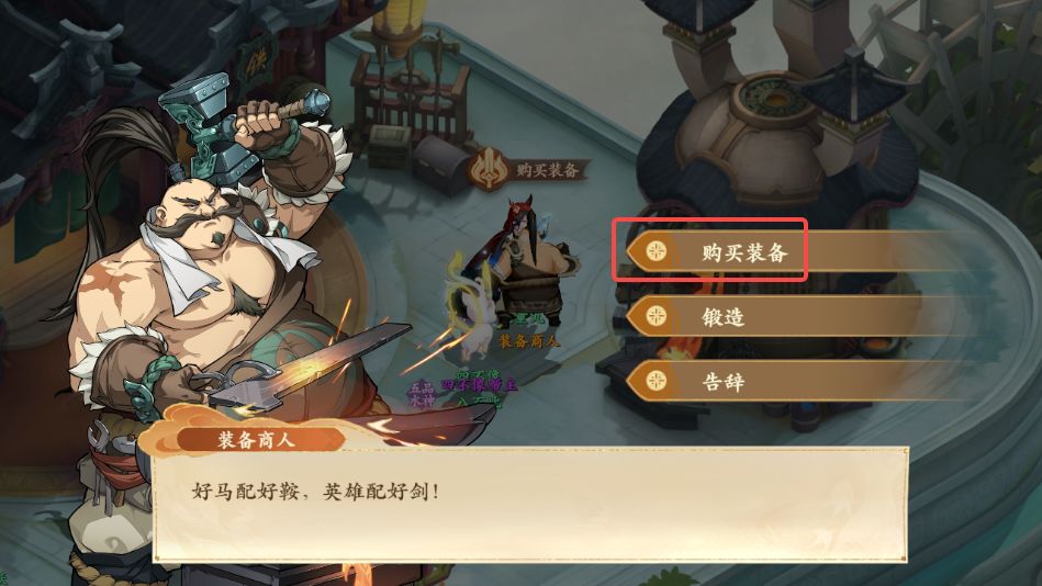 3、对话结束后前往如图所示装备商人处,与装备商人对话