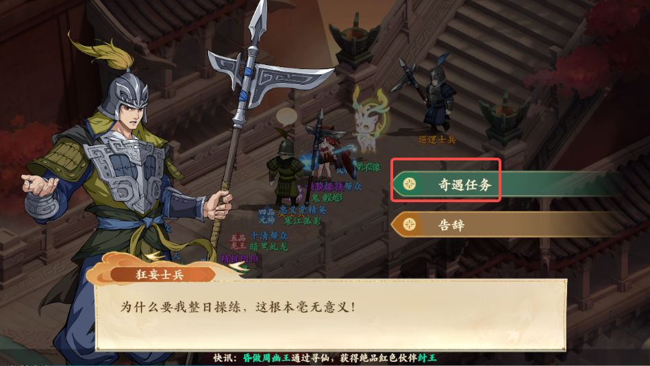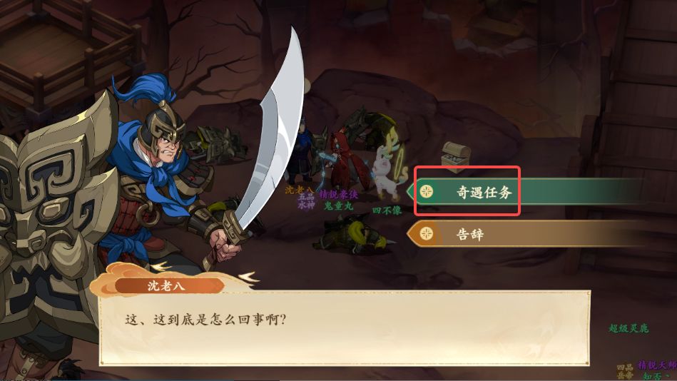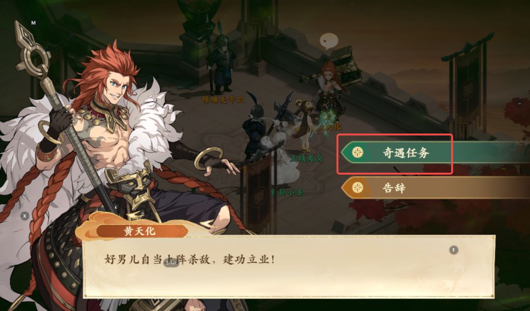 1、前往牧野战场如图所示处与沈老八对话,领取奇遇任务