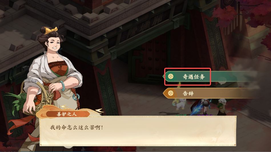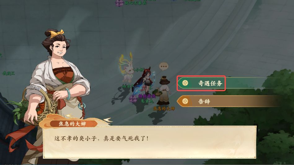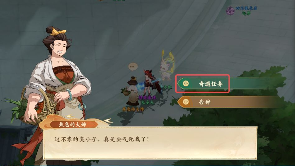 1、前往西岐如图所示处与焦急的大婶对话,领取奇遇任务