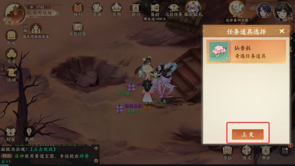 6、获取仙香糕后回到牧野战场再次与厨娘对话,上交仙香糕后任务完成