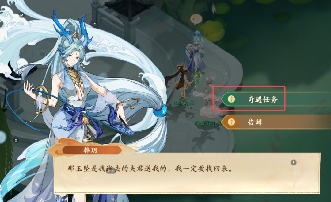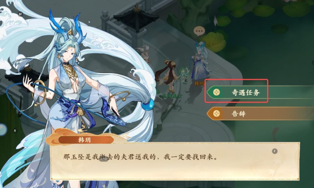 5、回到一开始韩玥处,再次与韩玥对话,上交精美玉坠后任务完成