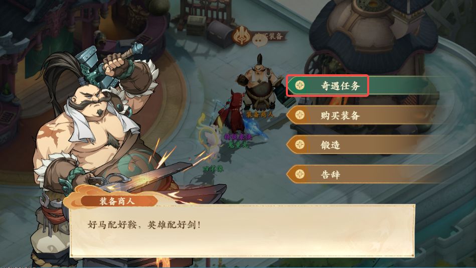 2、对话结束后打开地图点击装备商人寻路前往,与装备商人对话后触发下阶段任务