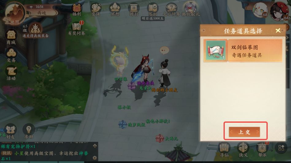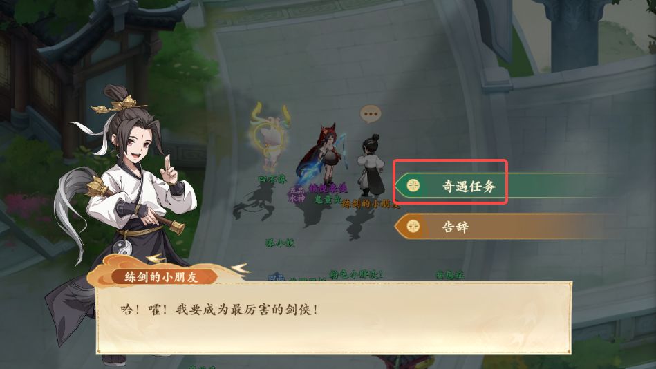 1、前往西岐如图所示地点,与练剑的小朋友对话,领取奇遇任务