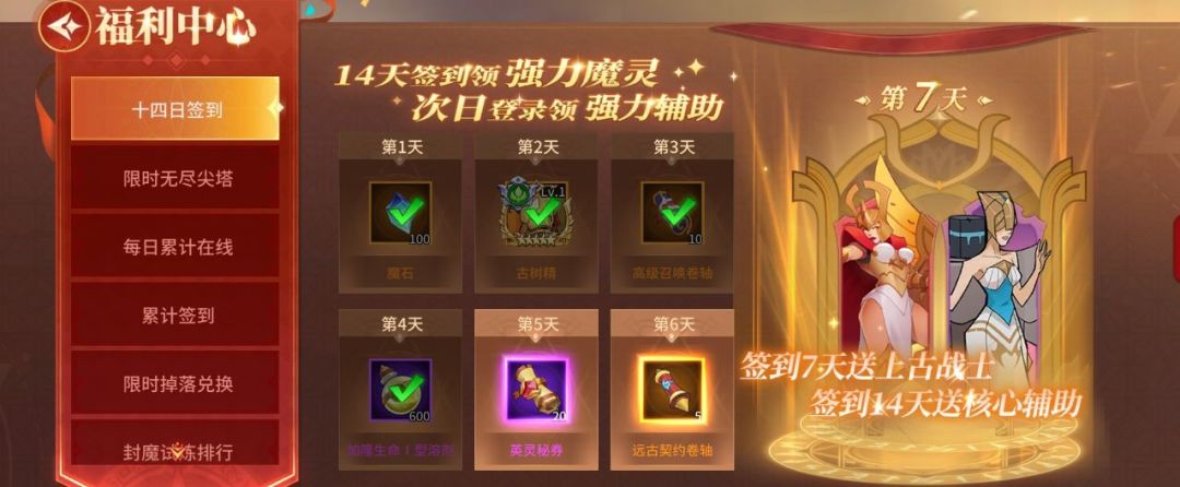*【签到】页面可以在游戏内点击右上角【十四日签到】按钮或是点击右上角【福利中心】找到,打卡截图内容必须与打卡示范一致*