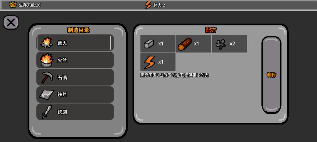游戏目前还在完善之中,已经能进行完整的生存流程了