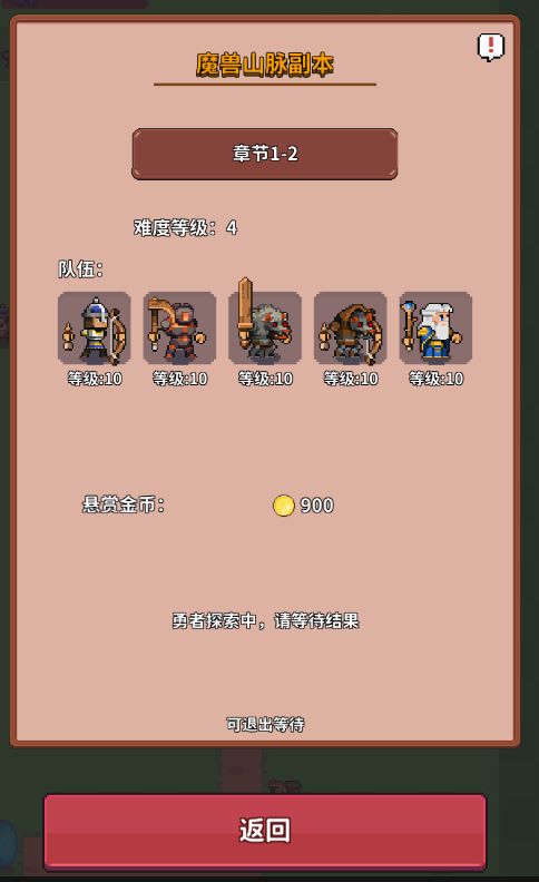 一定时间后,会返回结果,根据副本难度等级,有的勇者可能会阵亡,