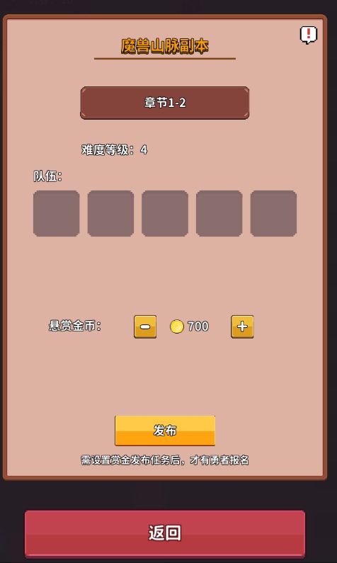 需要设置一定的悬赏金币,勇者报名后,玩家确定哪些勇者参加,