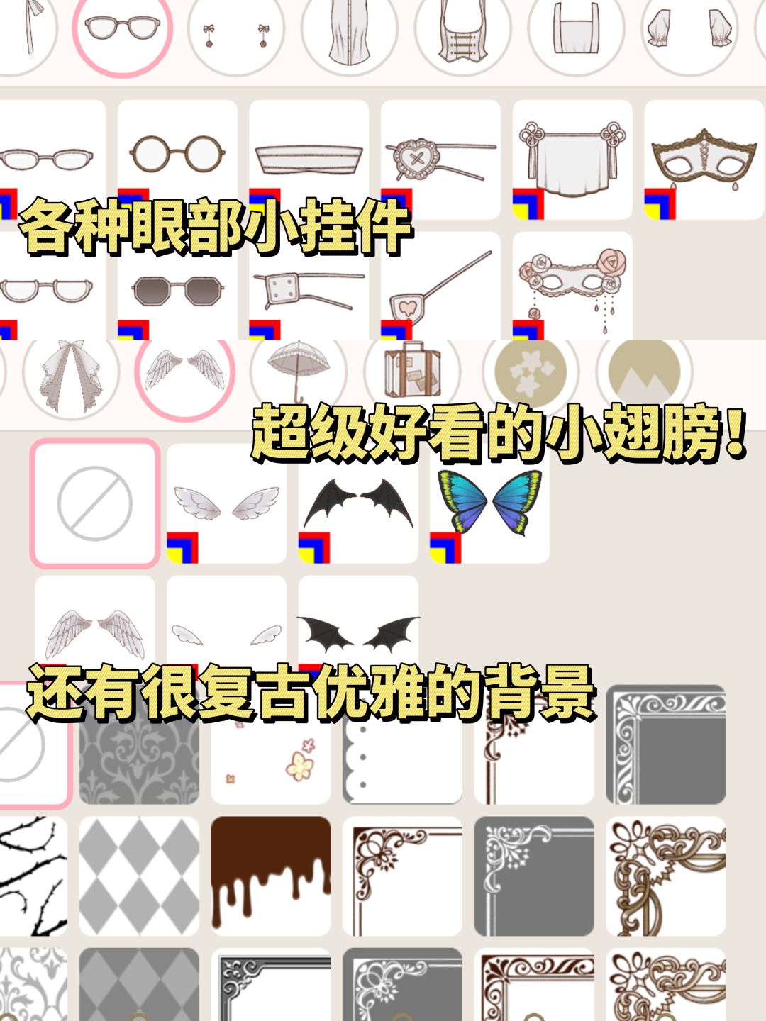 游戏里的衣服部件细分得巨详细~可以搭出好多种风格的小裙子!还有雨伞、翅膀等等各种小装饰,背景也很多选择,玩半天已经截了八百张图了。