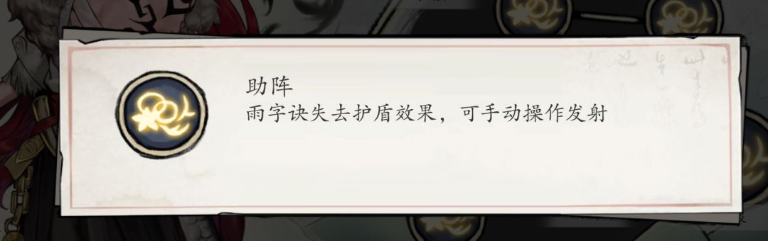 雨字诀: 每一把飞剑可以为角色抵挡一次攻击(无敌一次),集齐4把飞剑才会主动发射,发射波次随弹道数加成,每波24支剑,全部命中同一个敌人的话伤害非常可观。(雨字诀发射瞬间锁面板🔒)
