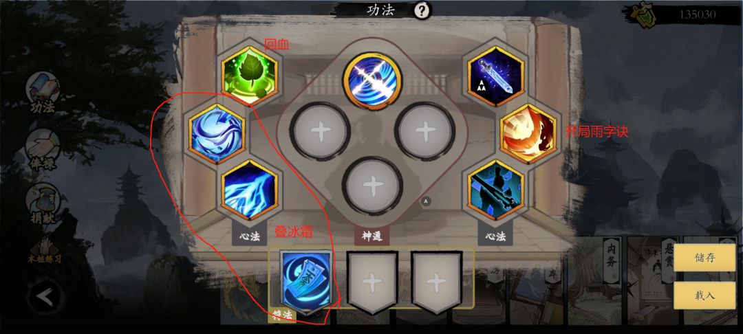 搭配如下: 有备无患代替沉心,其实总输出不变(这里不展开叙述)。舍弃多余的神通是为了降低开局不是雨字诀的几率。而且开局就拿雨字诀降低了广告券消耗,并且竞速的时候可以早学一个技能。生存跟不上的可以云霖换妖花+木球。