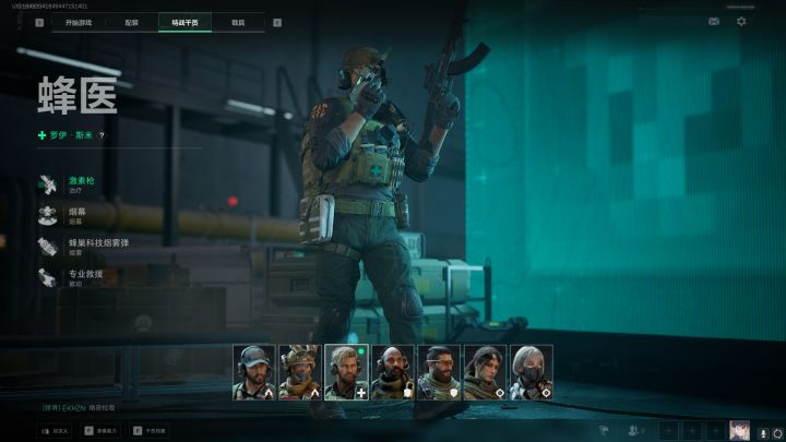 隘口和通道旁刷分的小能手。救人跟其他干员不一样,由3秒减为2秒,并且不用跑到倒地干员的正上方拉起。直接可以在旁边使用注射器。配合游戏内最高射速的版本T0维克托以及左轮使他成为了一个不可小看的存在。记得兵种道具带弹药箱跟维克多更配。其他的技巧为他的大招烟雾可以控制释放的方向,方法是按住鼠标左键不放,并且拖动,并且小的投掷物烟雾弹扔出以后使用治疗枪能将烟雾变成绿色,并治疗范围内的队友。