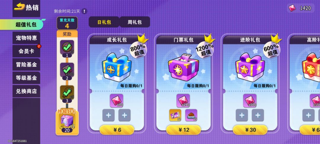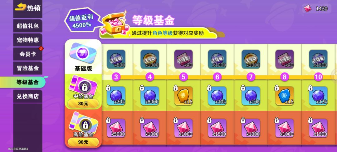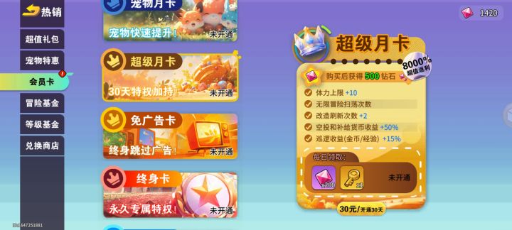 给大家总结一下游戏氪金攻略,首先是必不可少的月卡,大家可以先买个198的永久卡和60的永久广告卡,一劳永逸,方便后续游戏。
