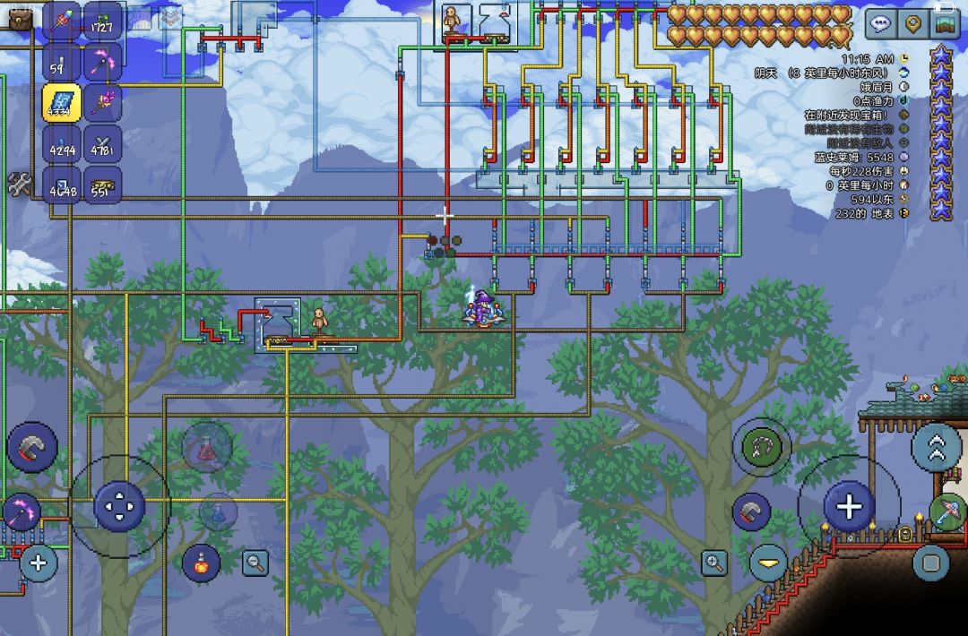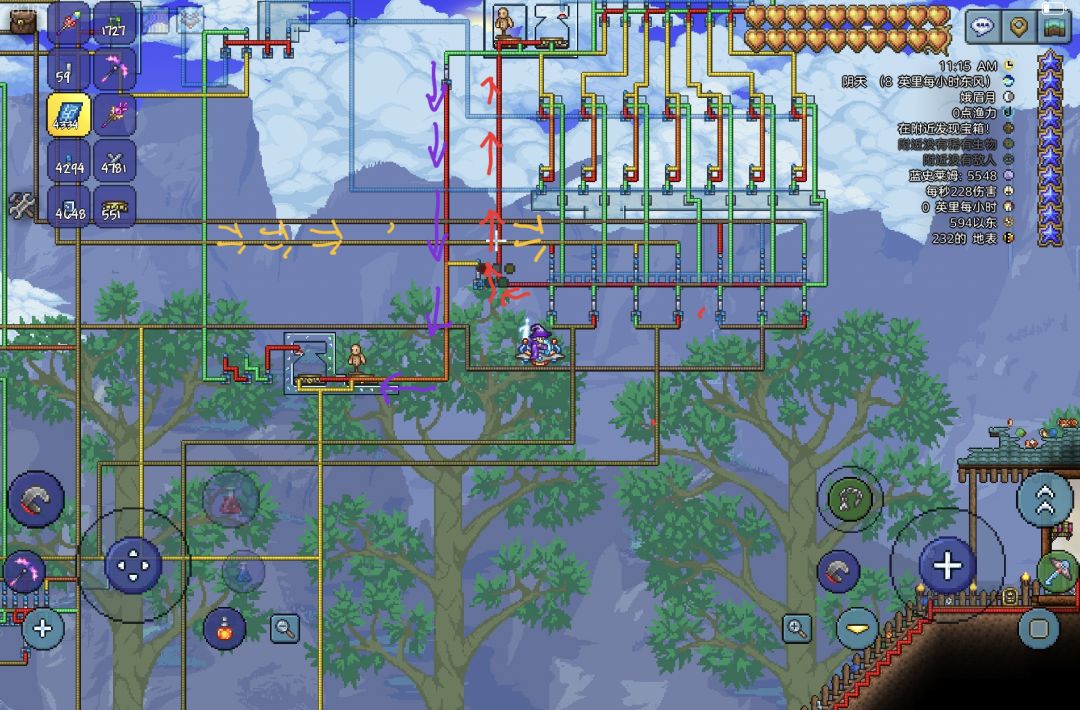 首先如上图一样准备石块,并且带有驱动器,用4种电线把它连接起来,同时建议把每一层的高度设置为一样,如果实在无法一样那么请把你所需要设计的电梯出口尽量处理成每种颜色的线只有一种,比如红绿蓝,而不是红绿红之类的。