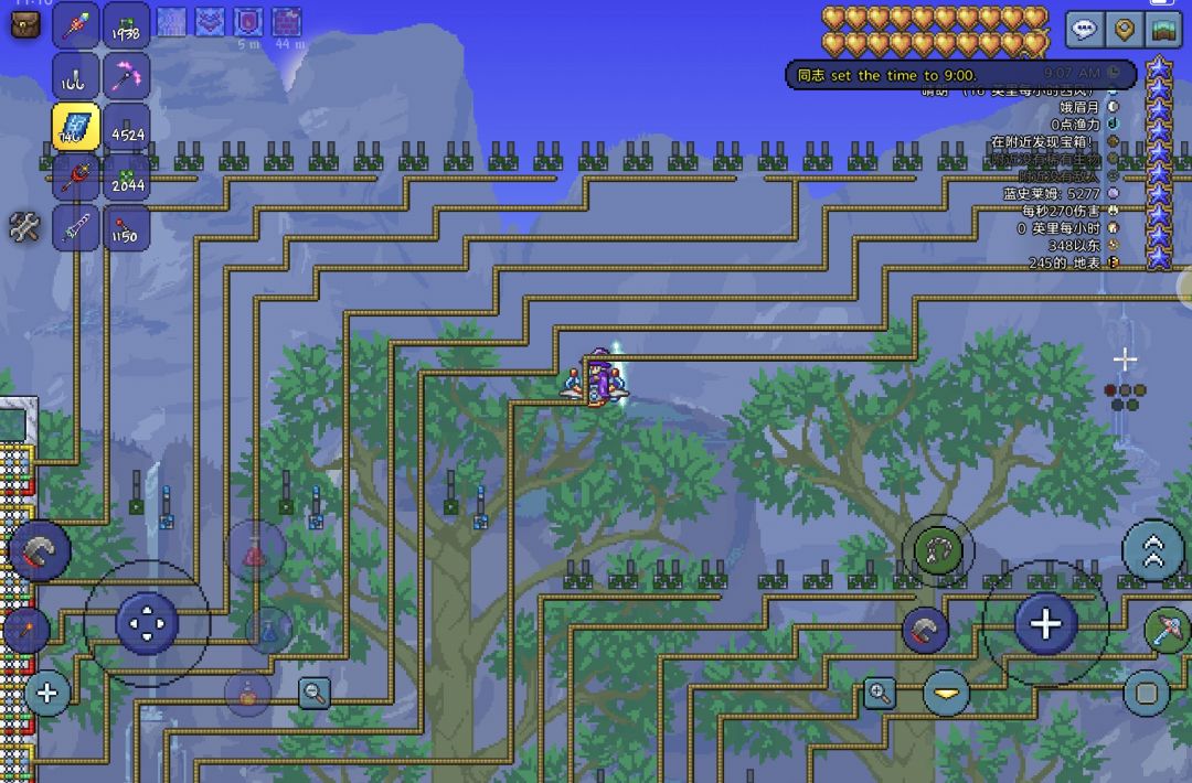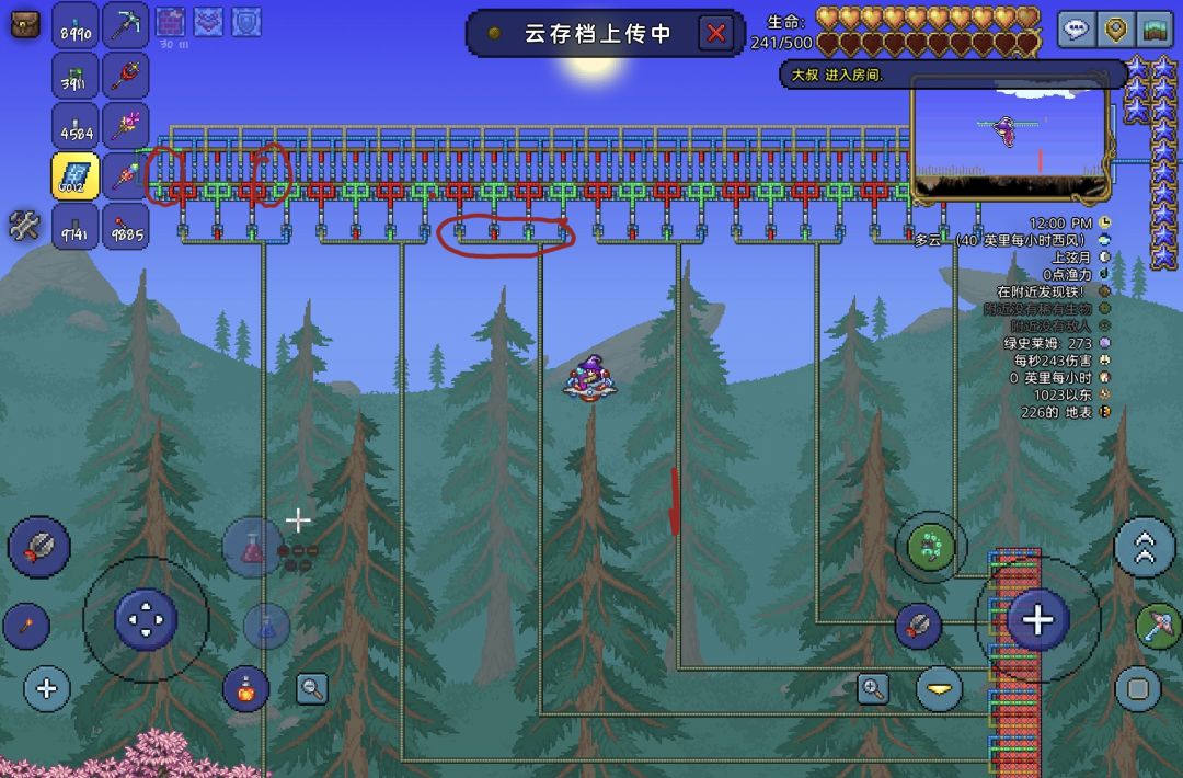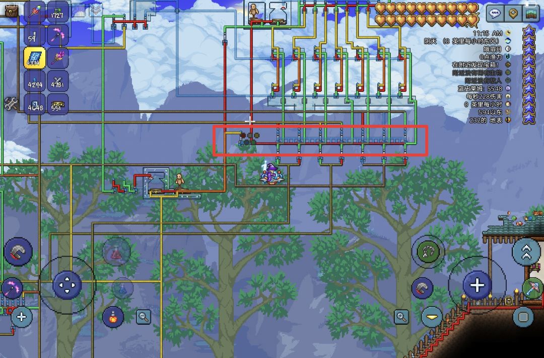 上图红色框内蓝线的设计就是为了防止有人不停按按钮的情况,可以看到只要有一个信号过来后,这一排的逻辑门灯都熄灭,所以只能第一个信号通过,同时当左下角傀儡复位,也就是当电梯停止时,停止信号又会传递会红框内蓝色的线使逻辑门灯全亮。但是这样做又有一个风险,就是假如电梯运行时,你直接退出了游戏,这个停止信号就没有了,等你下次就来逻辑门灯还是灭的。所以出现这种情况需要手动点亮,安装一个宝石锁,这样就只有房主可以控制了。