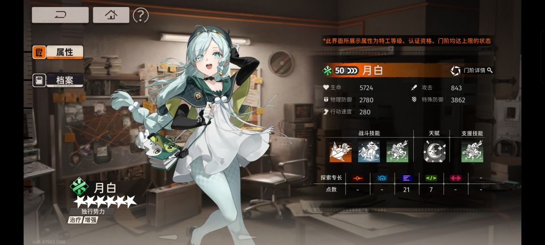 给友方治疗和加百分比攻击力BUFF的角色,开场时同阵营加各种BUFF,朝颜退场就消失,治疗技能意外地跟自身攻击挂钩,推荐卡带剪影格斗