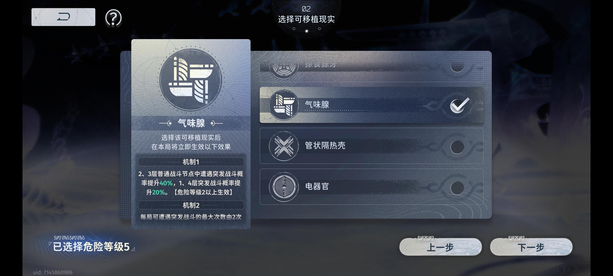 思路:开局选气味腺,一二层多战斗拿战力切片,尽可能选主题切片,先提高战力,碰到气味腺的战斗突袭打2个就够,三四层多选事件,随机切片