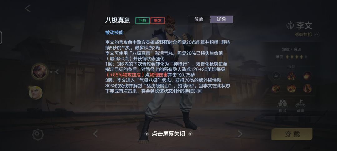 李文的被动技能叫做:八极真意