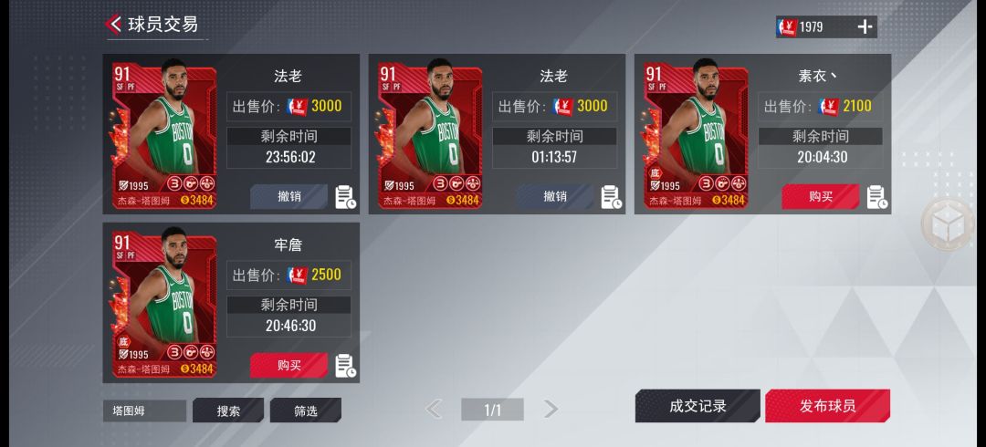 (3)第3种情况交易行搜不到该球星。你可以自己把球星摆一个很贵的价格。然后再去看右下角记事本,最近的成交记录。