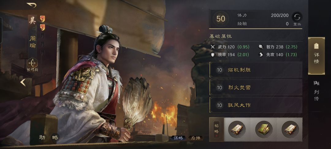 周瑜战法:临机制胜+烈火焚营+狂风大作。