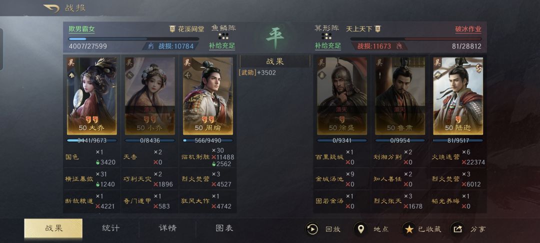 在此特别鸣谢游戏ID名为“欺男霸女”的玩家朋友,给本文提供了宝贵的创作素材。他把最初版本的铜雀弓进行了大胆改装,变成了天灾版的铜雀混编弓骑,并在战斗中强势拿下了对面徐盛、鲁肃和陆逊组成的肉都督。具体的思路有哪些亮点,我都给整理在了下文的段落里。