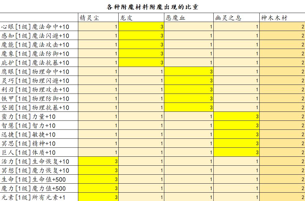 【游戏攻略-附魔材料】