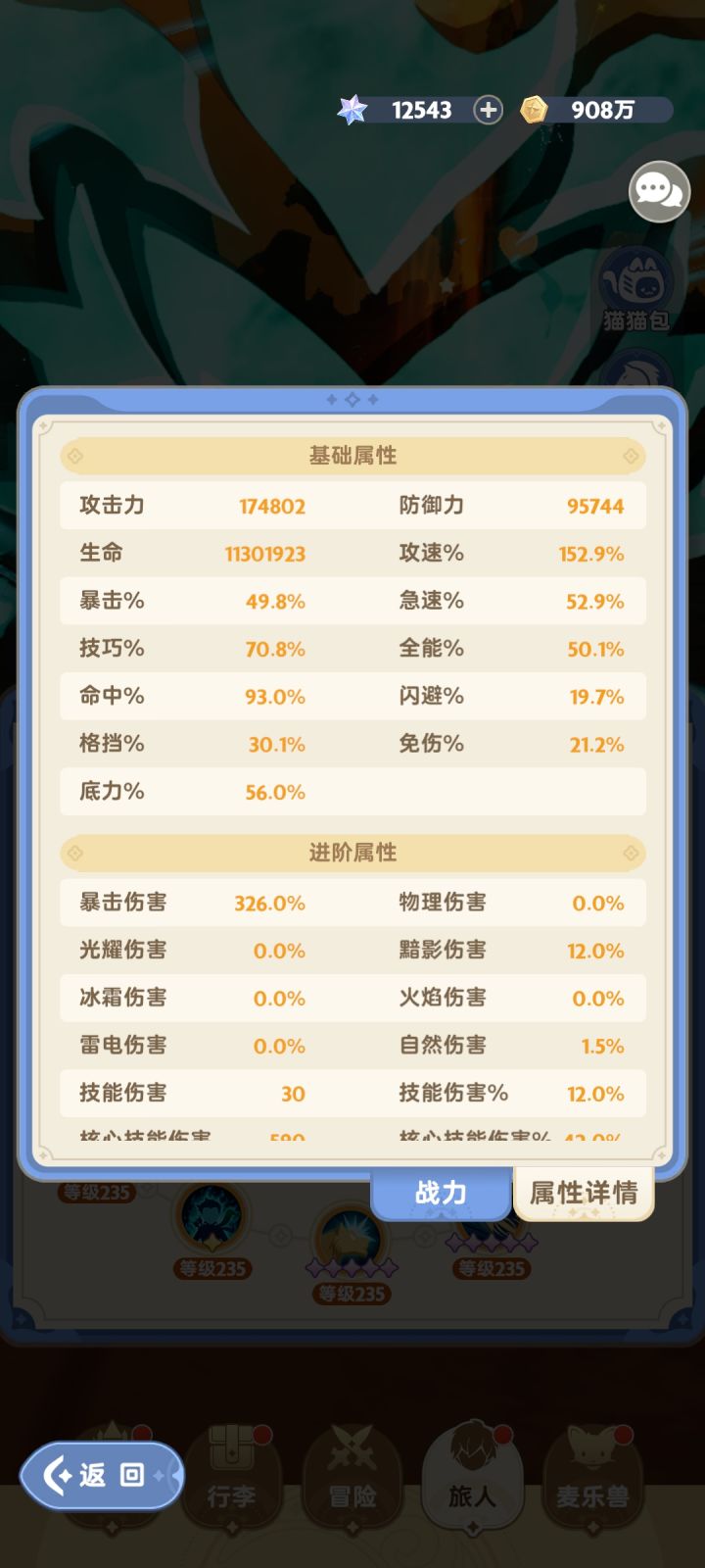 剩余全部叠急速和全能,爆伤,目前在我自己的号龙伤害稳定1k亿,从我的经验看来如果用右线,最好也是暴击跟技巧双70,急速和全能50以后更好,不过目前我没办法叠到这样的属性