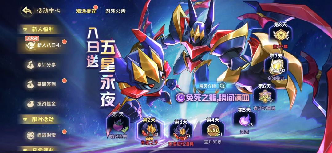 新手玩家可通过领取邮件、新手任务和参与福利活动获得大量的资源奖励,还可以领取到很强大的精灵。
