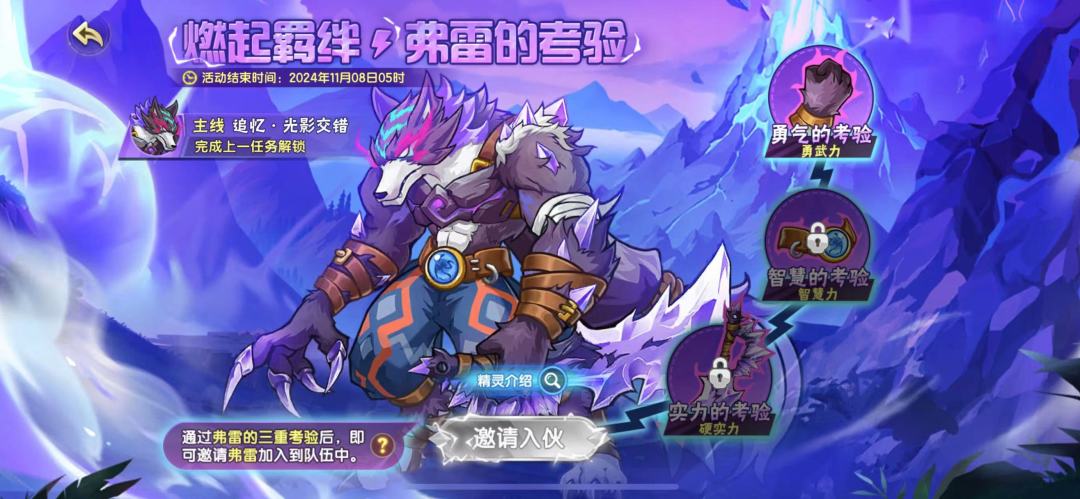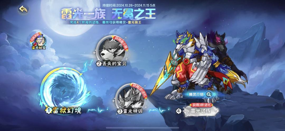 完成4个阶段的试炼,可以获得-雷光狼王-也是个非常强力的精灵。