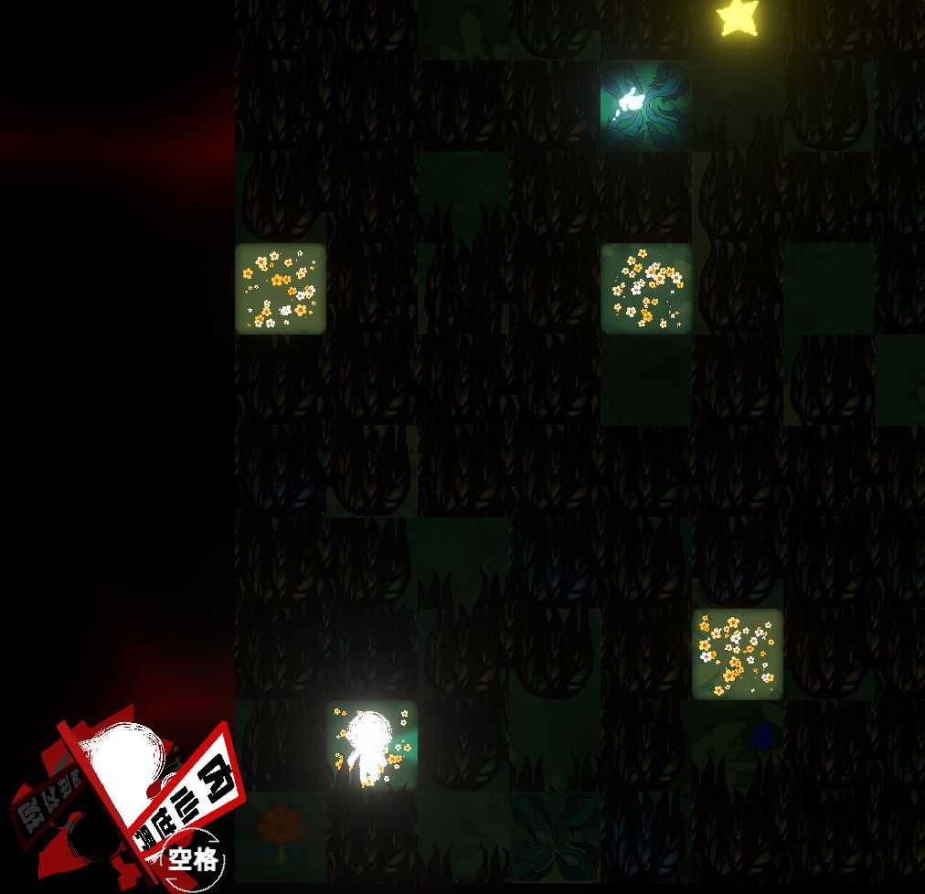 第二关,我们加上了会动的毒荆棘作为玩家通关的障碍,只要走到有荆棘的格子里就会死,这算一个游戏中为数不多的死亡机制。