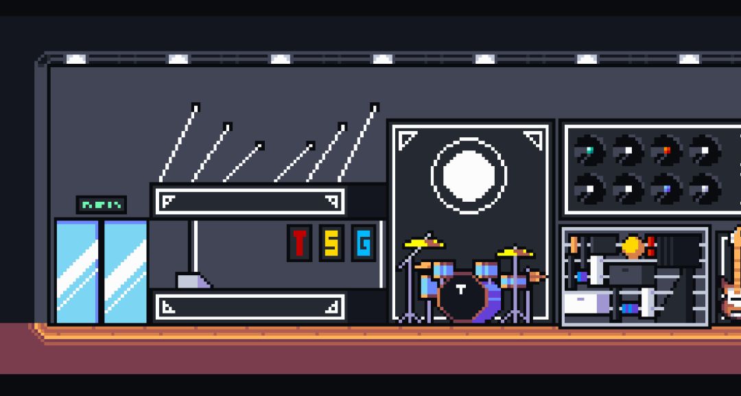 主要场景确定,美术风格确定,大概花了几天定剧情,场景也根据文案进行设计,有一幕是在乐器行的设计,虽然目前还在装修阶段,但是实际效果还是很不错的,目前还未匹配到剧情,或许后面会有更多内容进行实装。