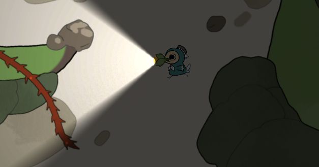 我们能看到物体是因为物体反射了光,也就是对于眼睛来说没有光事物也就不存在。因此我们设计了一种以光照耀出不存在事物为主要玩法来融合我们横板平台跳跃游戏的游戏玩法。