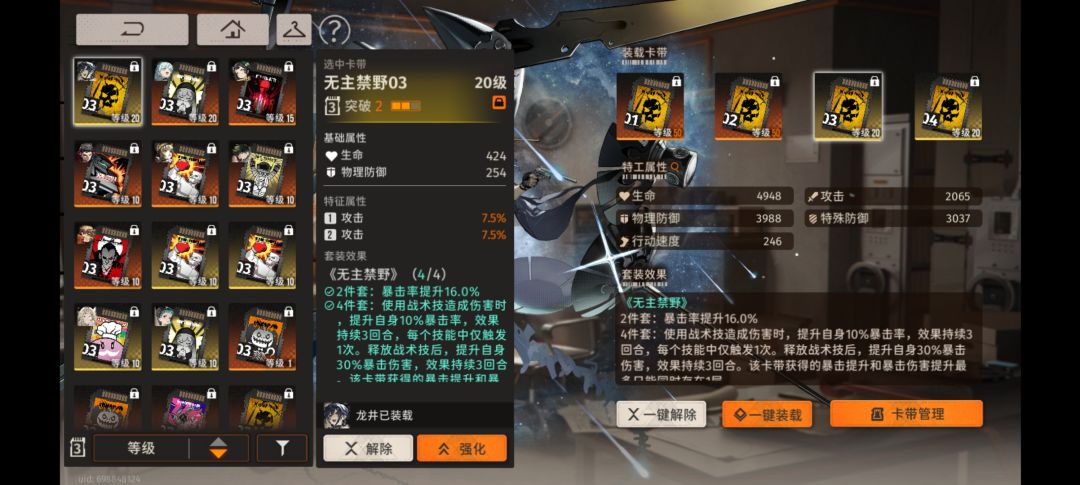 输出位置5星卡带1/2号不要强化超过20级,因为反吃会返还升级材料。