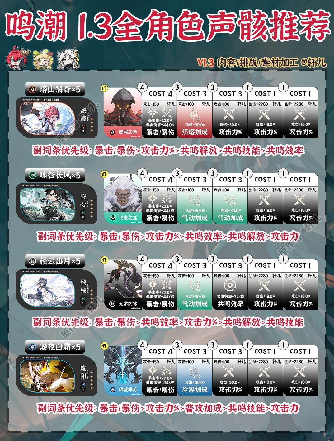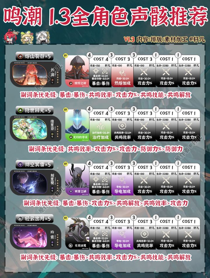 鸣潮角色 | V1.3全角色声骸推荐自查表