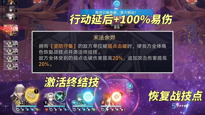 【利好追击、击破体系】敌方全体受到的弱点击破伤害提高20%,追加攻击伤害提高20%。