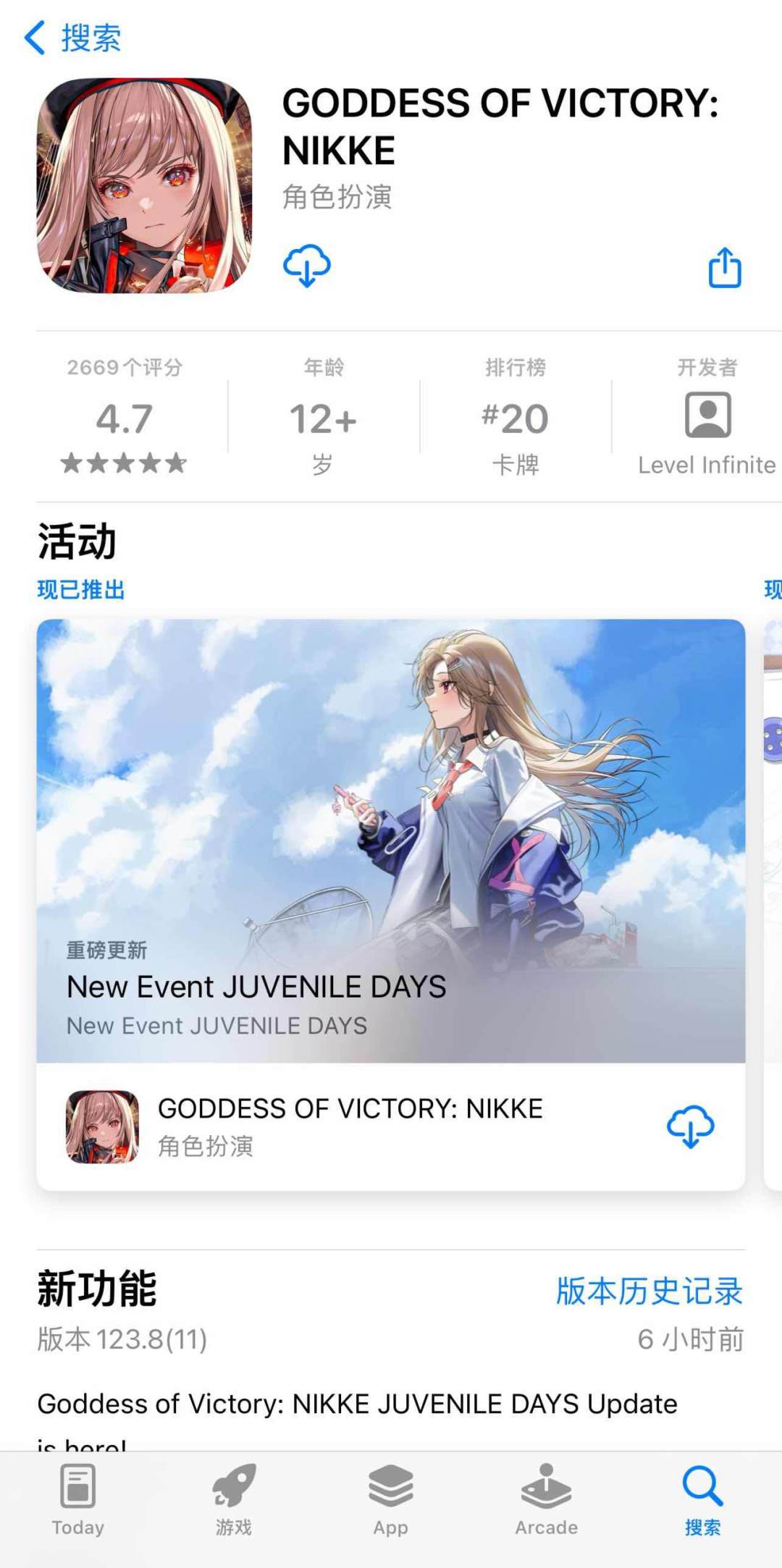 第二步:在AppStore登录任意外区商店,搜索【NIKKE】即可下载更新游戏哦~