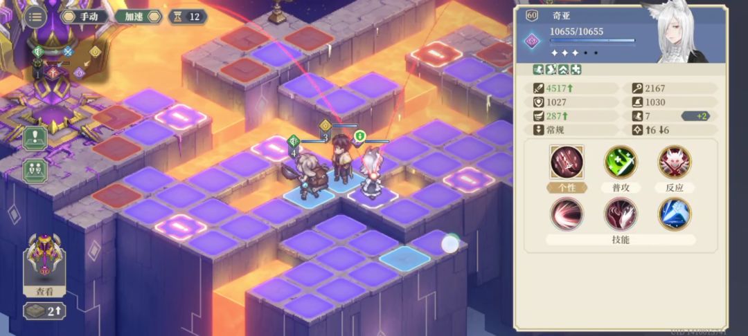 奇亚现在输出上目前有两个主要手段,一是大招,二是初始技能(不考虑餐刀这种一次性技能),奇亚的输出招式里,排除开唯一的群攻招式外,也只有大招射程可以达到2,餐刀,初始技能,普攻全部都是1 ,这也是奇亚手短够不到敌人的原因,所以大招的优势之一就是单体唯一射程2的输出技能。初始技能倍率150,那是不是初始技能的伤害就一定比大招高呢,答案是不是。因为大招有一个特性就是无视敌人防御,那就说明在自身攻击比较低,敌人防御比较高的情况下,大招伤害是比初始技能高的。下面放截图此时我奇亚攻击在4500左右,初始技能伤害在5500