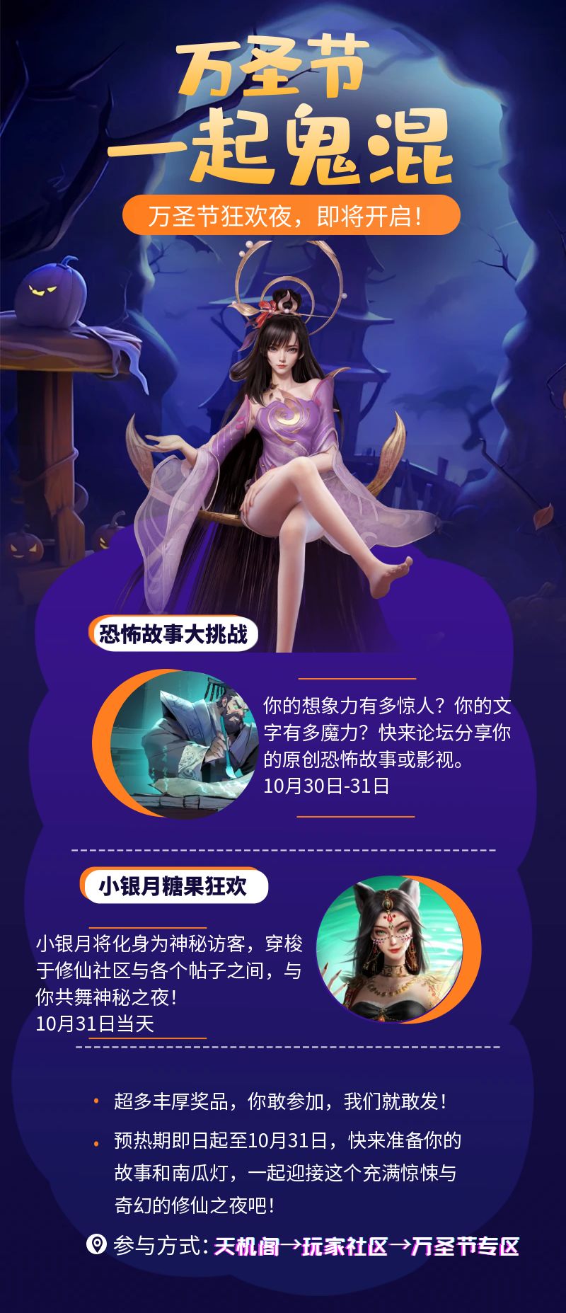📅⏰ 活动时间:预热期即日起至10月31日,快来准备你的故事和南瓜灯,一起迎接这个充满惊悚与奇幻的修仙之夜吧!