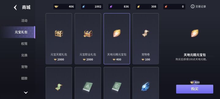 进游戏把邮件和兑换码的元宝领了,直接进商城把天地元精拉满,然后去抽异宝,不管抽到什么,都可以舒舒服服的开局了,没通关普通50的可以加群等大佬带无尽,无尽也是每天500个元精