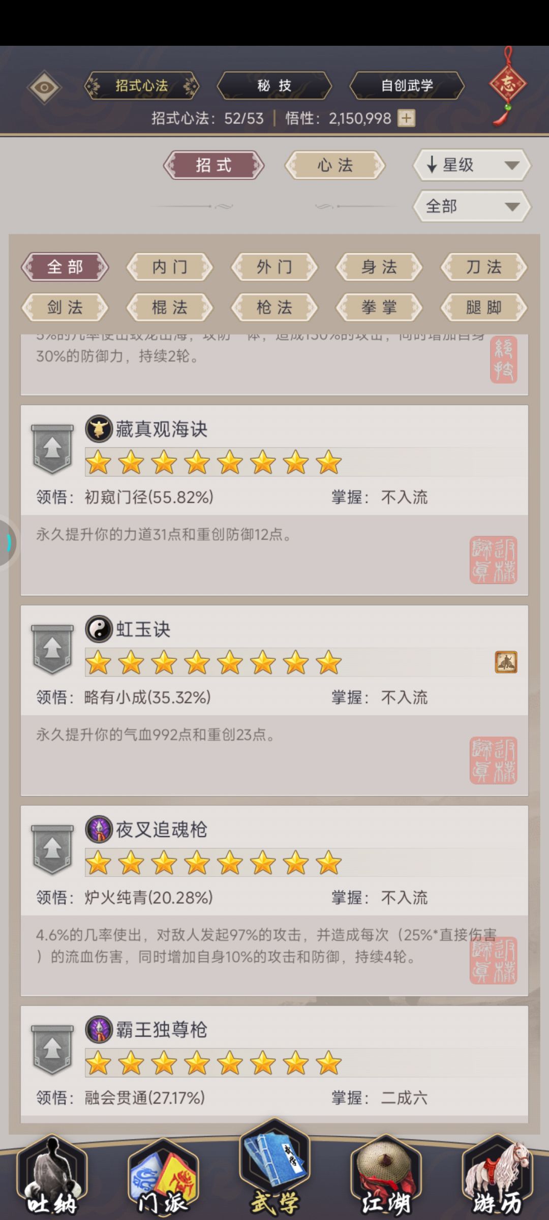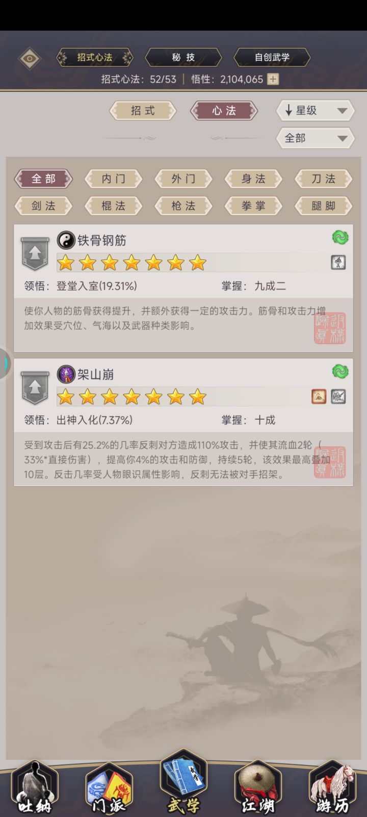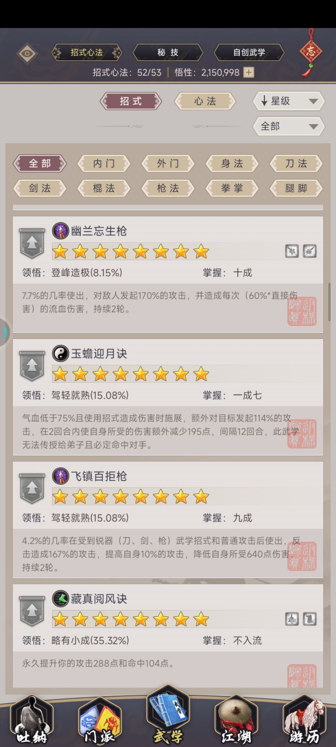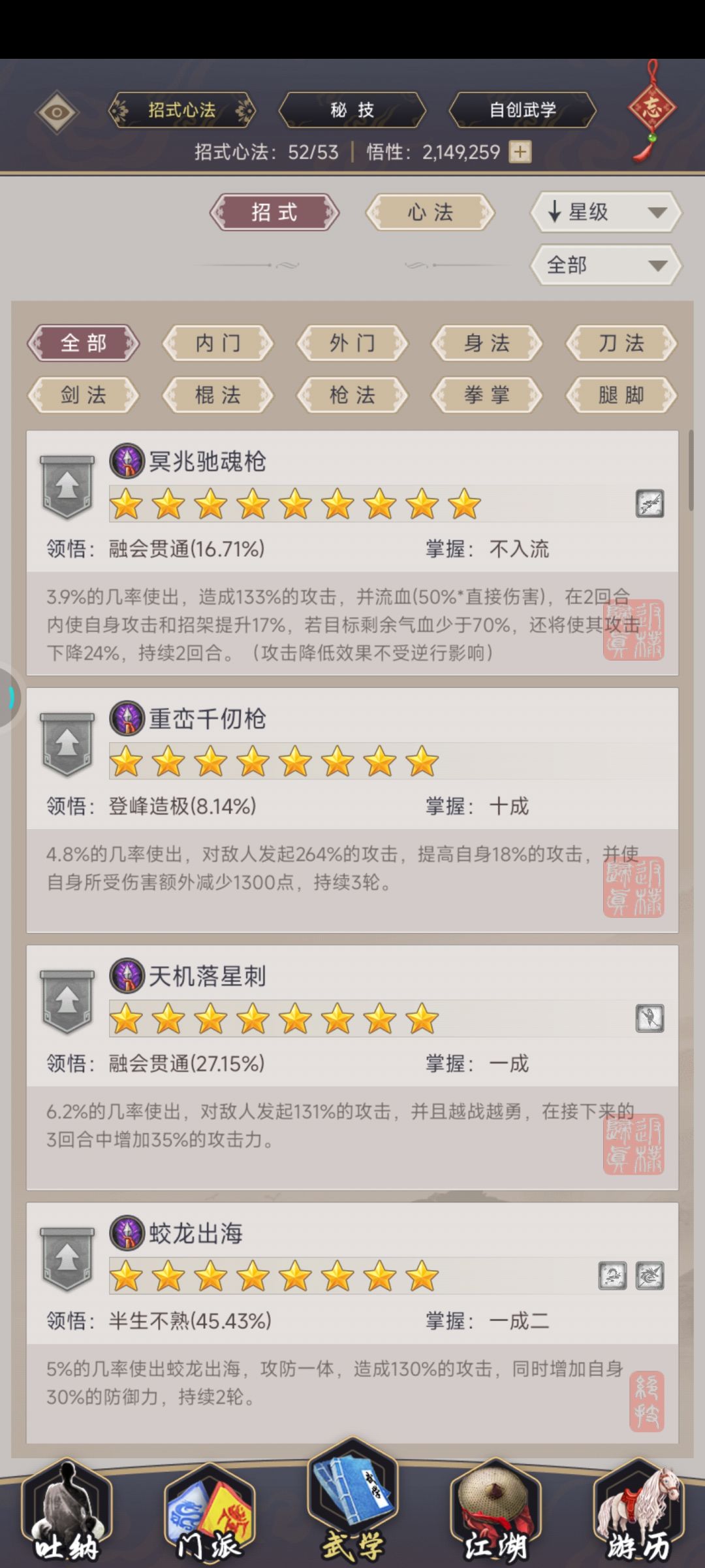 整个技能组8星以上技能都放这了,驾崩精要一拉满,刀御11。今天刚提的斗破乾坤,拿去试试然后就那么过了