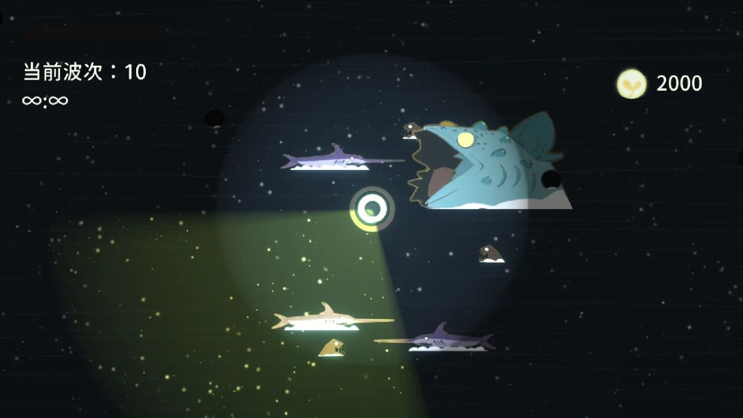 本次来对游戏的大致玩法和内容进行介绍:本游戏为类幸存者游戏,通过点击击杀被光照到现出原形的怪物来推进游戏。游戏总共有十波,在第十波中会生成一个强大的怪物,只有击败该怪物游戏才能胜利。其中每波结束时都可以消耗击杀怪物获得的光能来强化灯塔及其相关特殊能力,使得后面波次的防御能更加轻松。