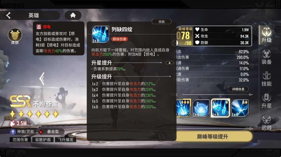 【感电】:友方单位技能或普攻对施加了【感电】目标造成伤害时,消耗一层,造成宙斯40%伤害