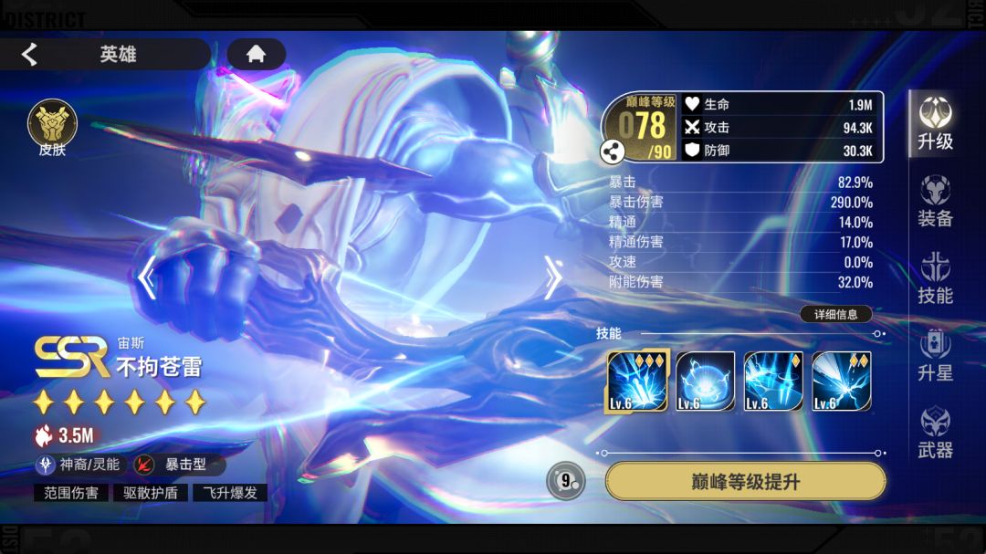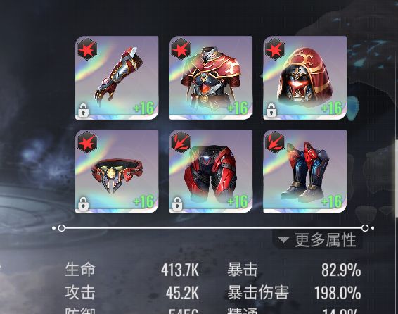 宙斯是目前最吃装备的角色,光有攻击力还不行,双爆也得跟上,双爆跟上了,初始能量也得跟上,优势就在于先手,所以装备推荐使用双爆套,优先拉暴击、爆伤,保障稳定输出,如果洗不出来,就洗初始能量,当破盾神玩
