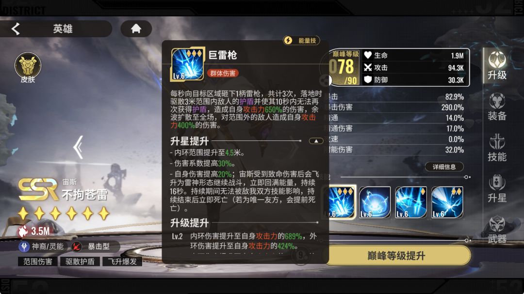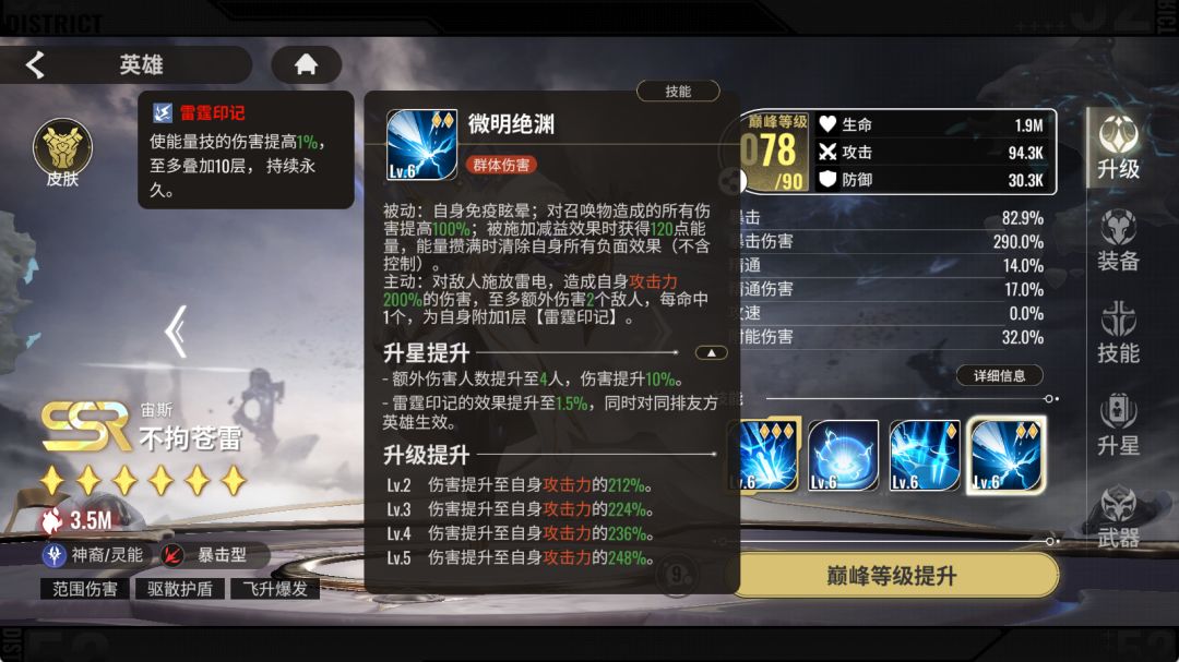 教大家如何最大化使用此技能,PVP时开局放前排,装备洗一些初始能量词条,对面雷德优先把雷神咬成飞升状态前先释放一轮技能,清除对面全体护盾,飞升状态后在释放一轮,目前版本大多数玩家都是洗的施密特和泽米拉初始能量词条,那么开局这两个角色必定是优先放技能的,其次就是绿毛或者雷德,所以当雷神打出了能量技后且刚好是第4次充能,那么将是一轮爆炸伤害,对面根本顶不住这一波