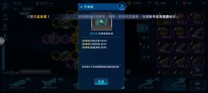 7.子系统这东西加成很大,建议萌新经验比较少直接问大佬们怎么洗就好,出过很多攻略,或者公屏/团群问。子系统开启用的是军团商店买的“链接矩阵”,然后通过“改造”来刷新属性。其中第一条固定(但可以刷大小)第二条必出,但类型与数值不固定。第三第四条几率刷出。(如果四词条貌似大部分其中一个是负面如加能耗,少部分正面如音波思上子系统加电磁)(图3)