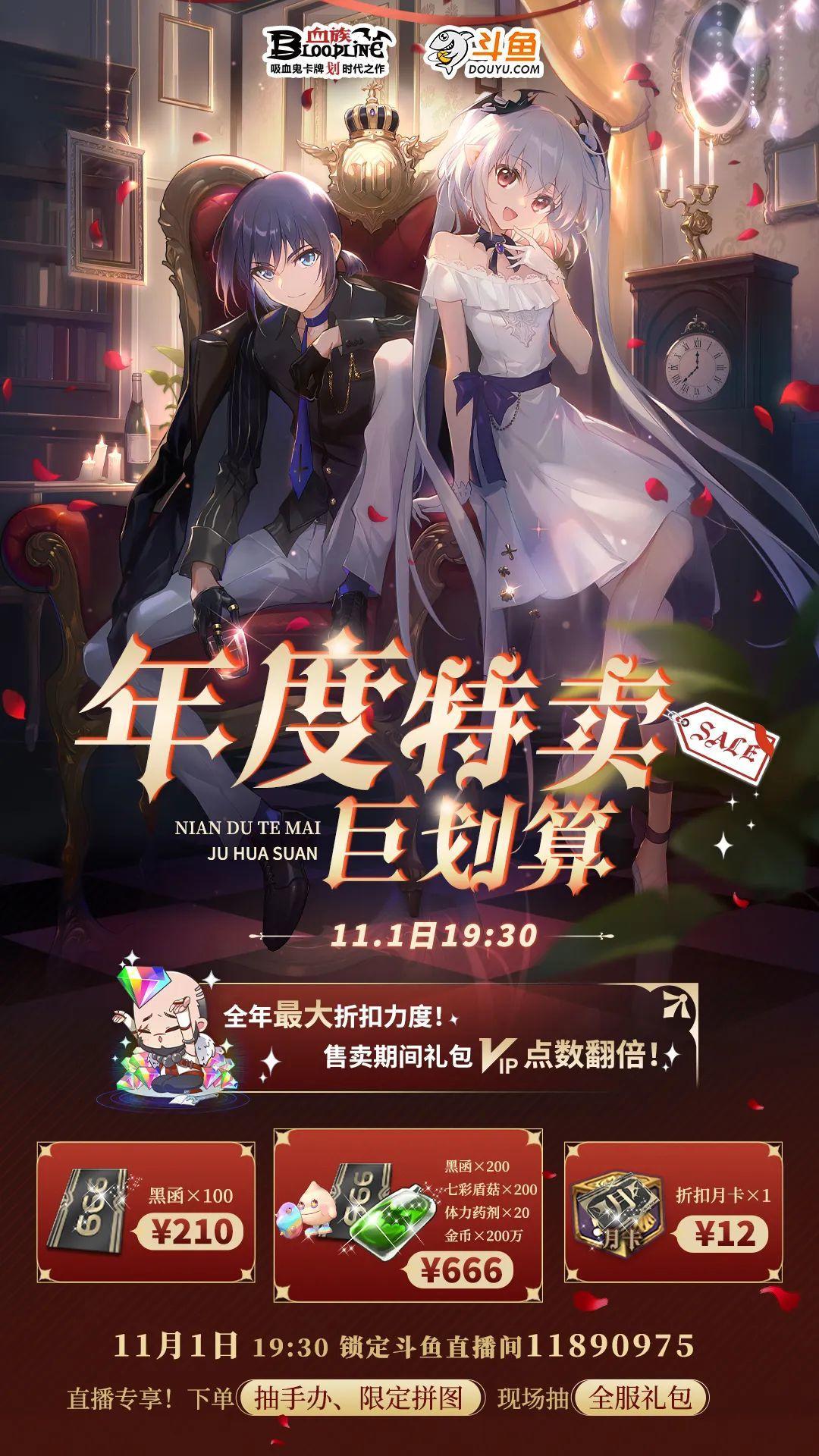 ✔ 请提前下载斗鱼app,注册斗鱼账号,关注血族bloodline手游直播间,直达特卖直播专场不迷路!