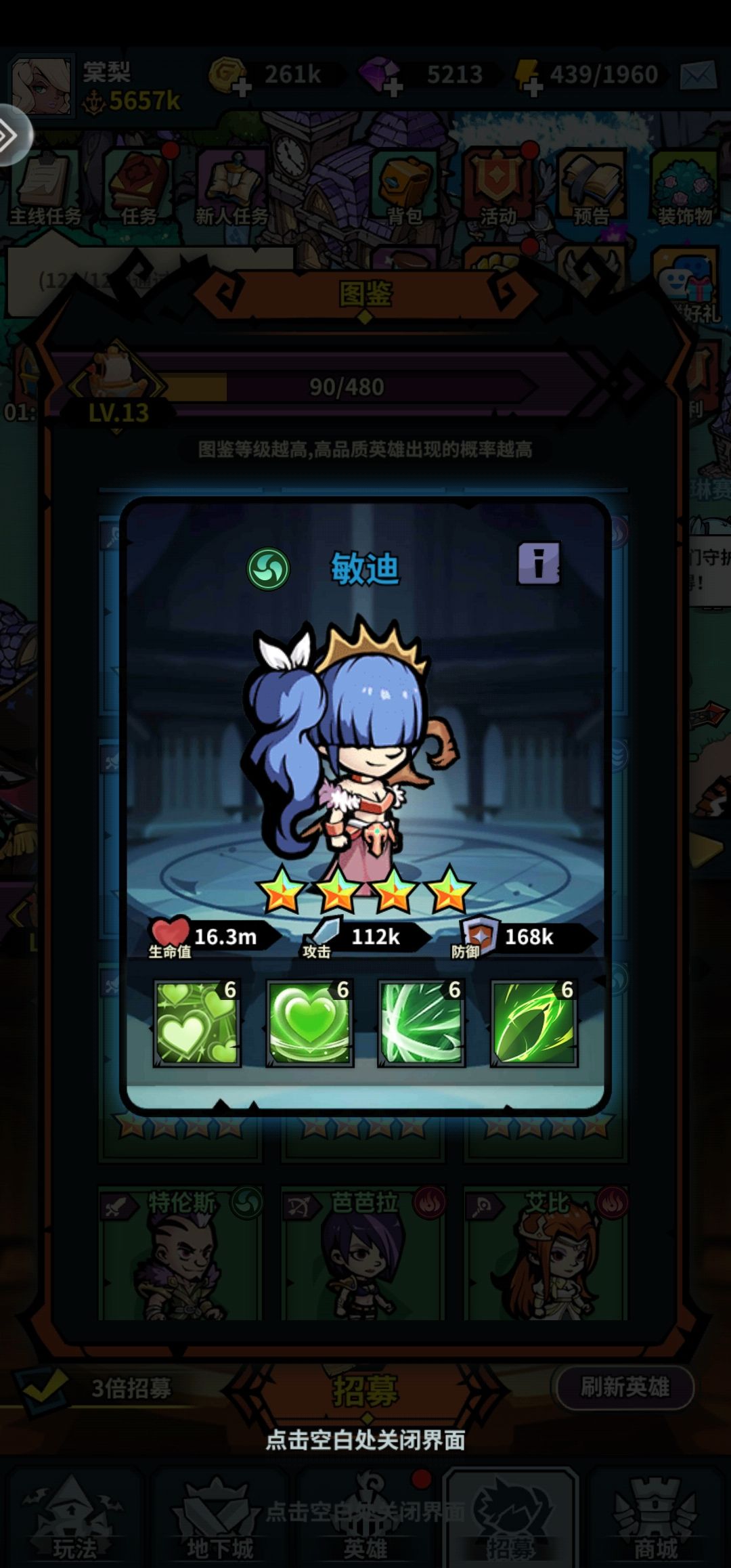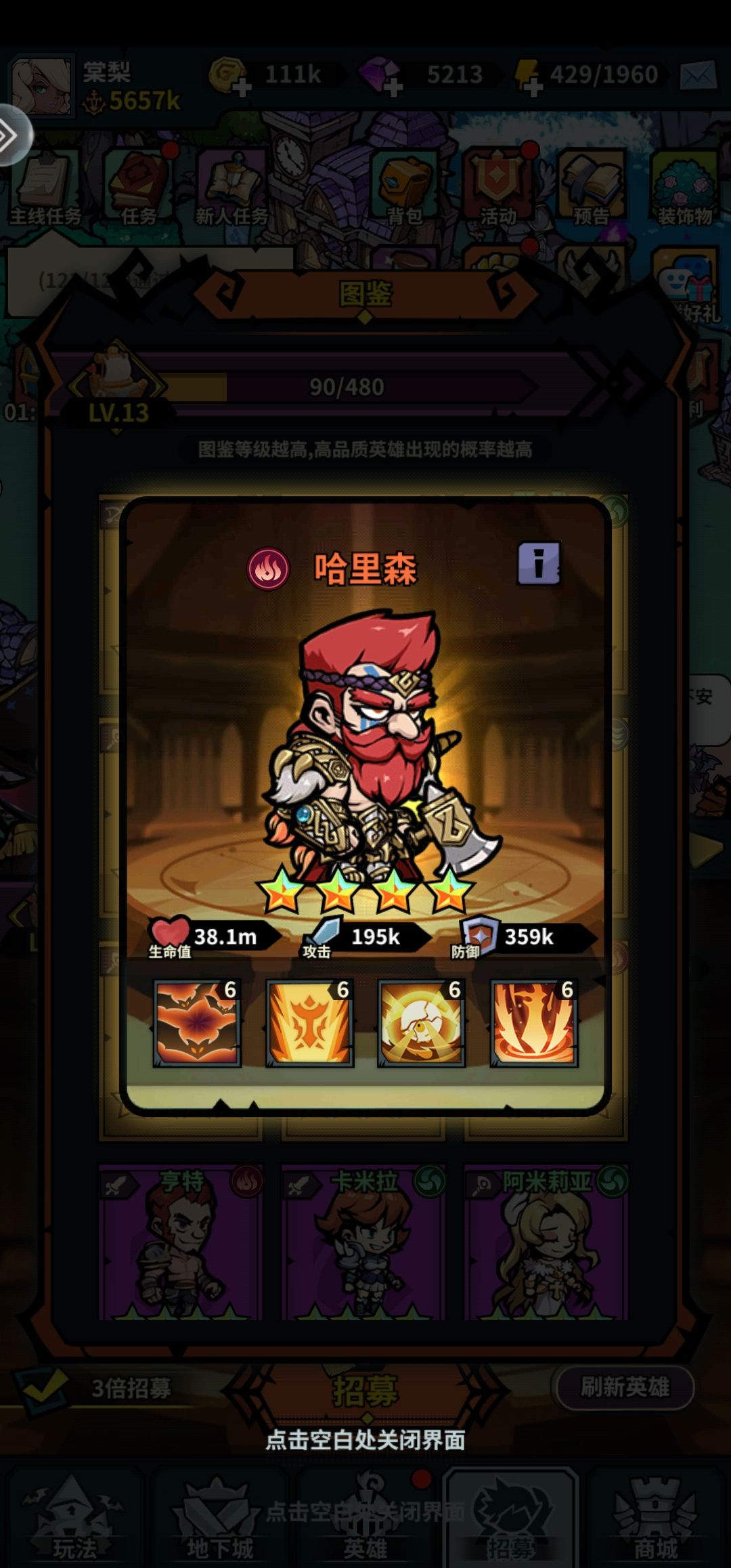 前期游戏核心:钻石,招募卷,单英雄战力。