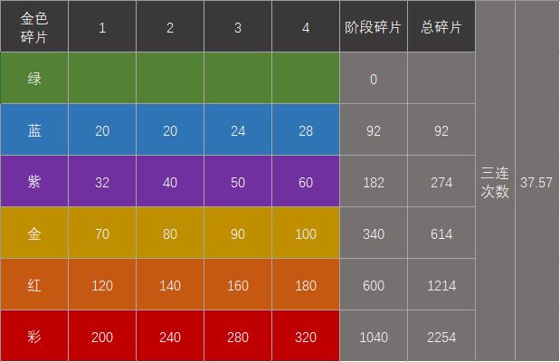 算了下金色佣兵拉满需要的碎片