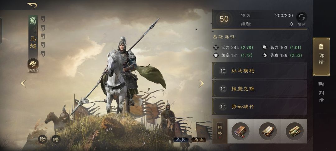 轻骑兵特性疾驰,专精点亮纵马驰矛。